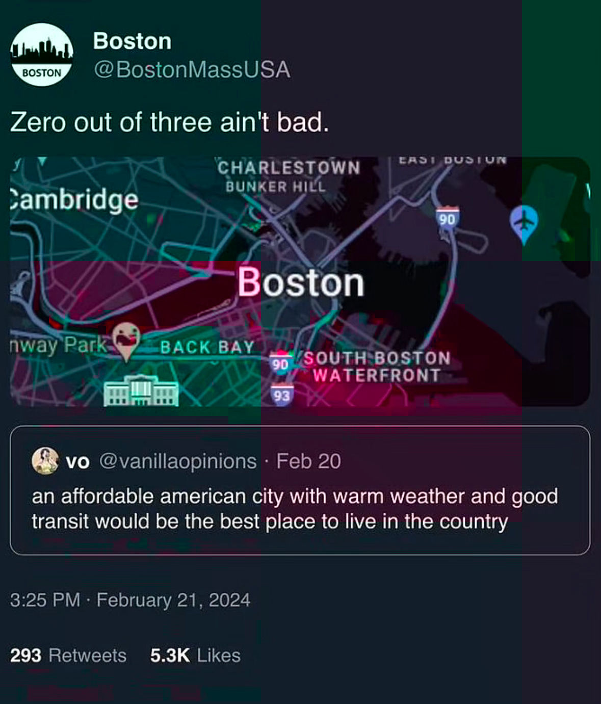 Majority of people really just want cheap and good housing, food and weather, and probably want to be doing something creative and fun.